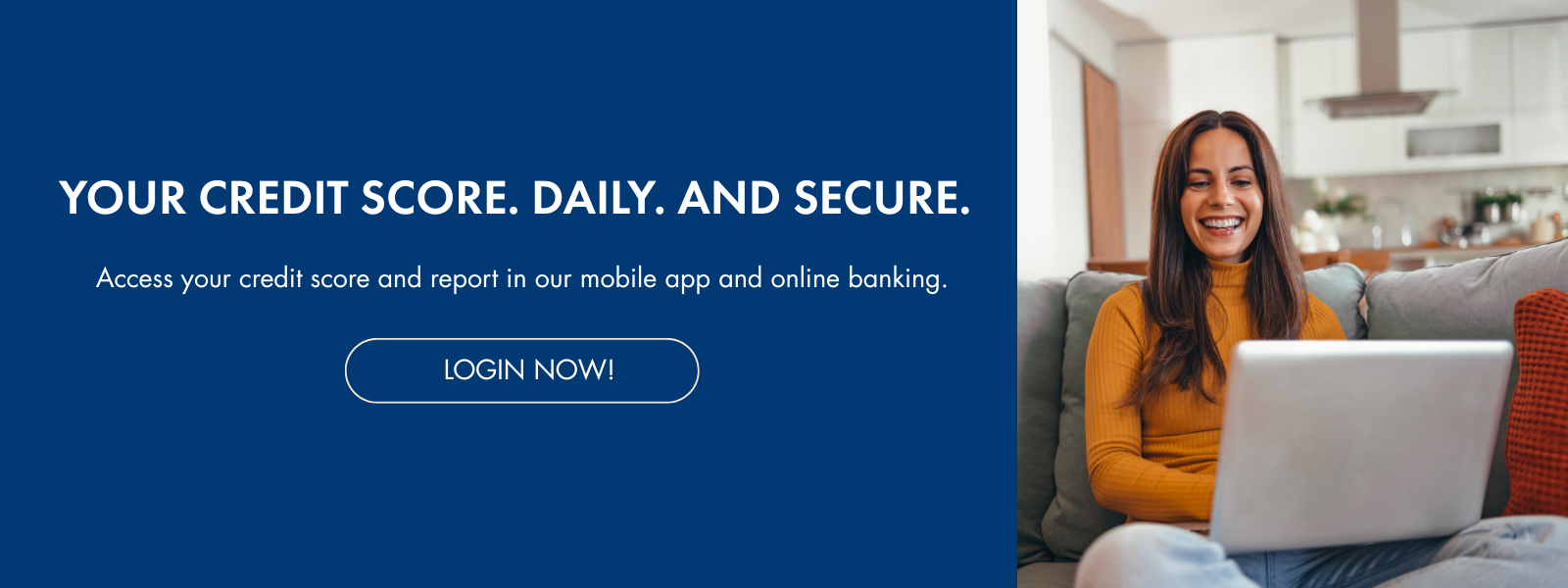 The credit score will be updated every seven days and displayed in mobile and online banking. You can click "refresh score" as often as every day for an updated credit score.