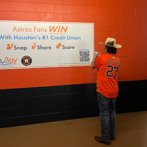 - Go out to an Astros game and while at Daikin Park find any Texas Bay Credit Union signage.